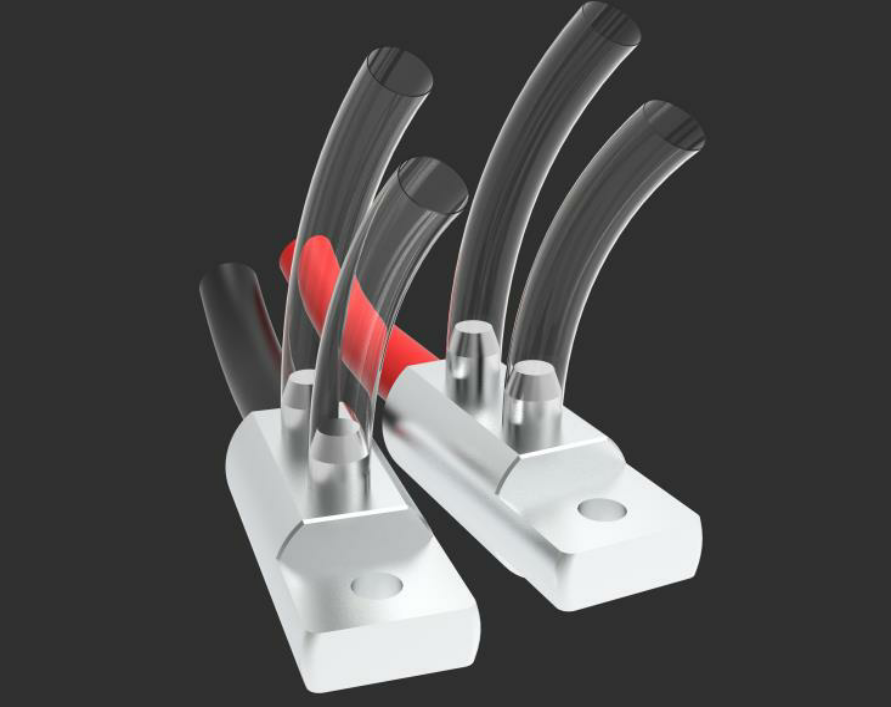 液冷是一種最佳的解決方案。歐洲標準的直流充電槍用的DC+、DC-線纜,可以制成液冷線纜。對線纜的軟體導線和歐洲標準的直流充電槍插孔式液冷端子,均通入循環(huán)流動的冷卻液。軟體導線、插孔式液冷端子在充電過程中產生的熱,由循環(huán)流動的冷卻液帶走。這樣可以大幅度地提高軟體導線、插孔式液冷端子的承載電流。線纜的體積較干式電纜不會增大,既符合人體工程又可滿足使用要求。