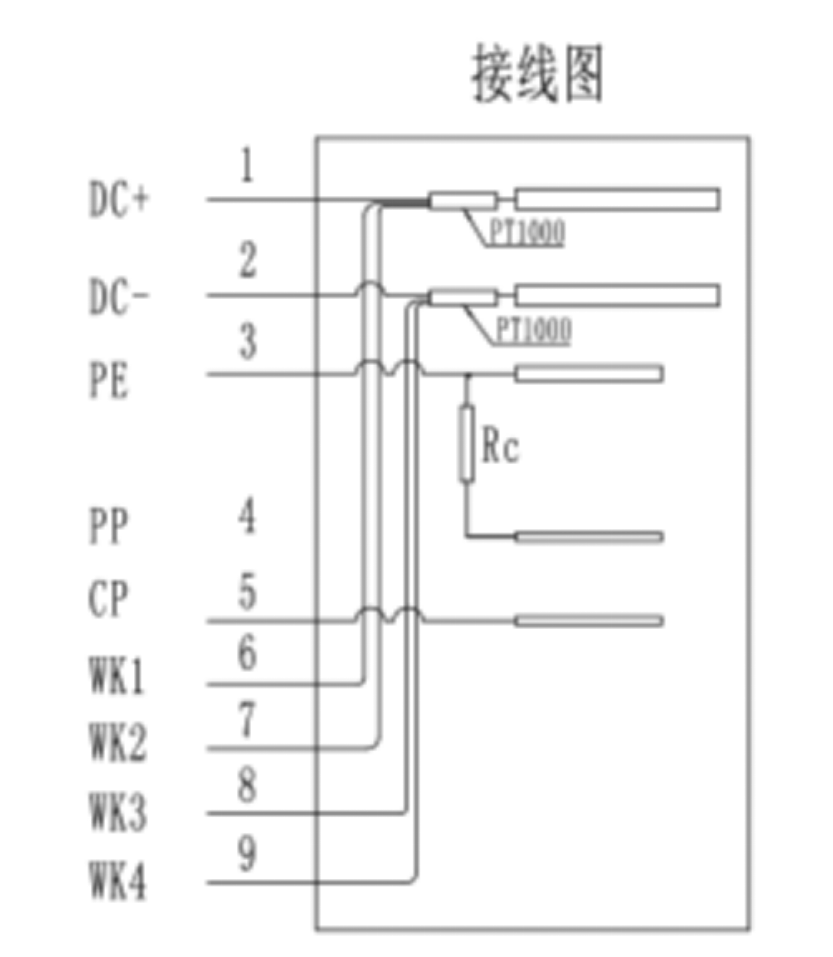上圖中DC+、 DC-電極,均可構成冷卻液進、出回路,電極連接充電樁電源的正、負極。其上的進、出液管連接液冷源。