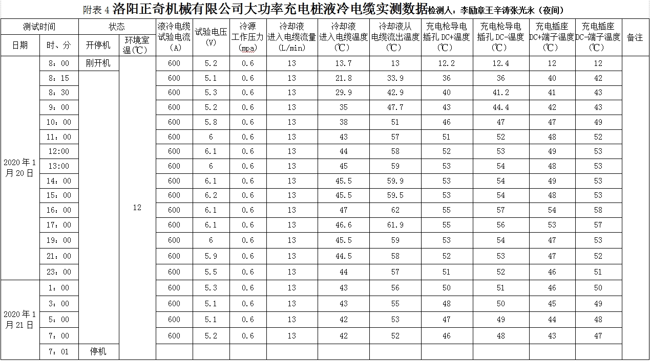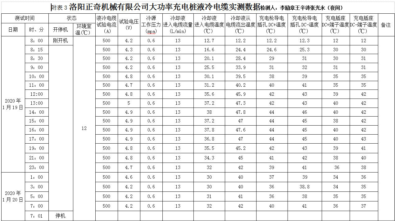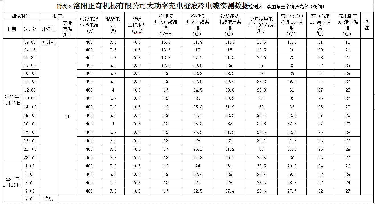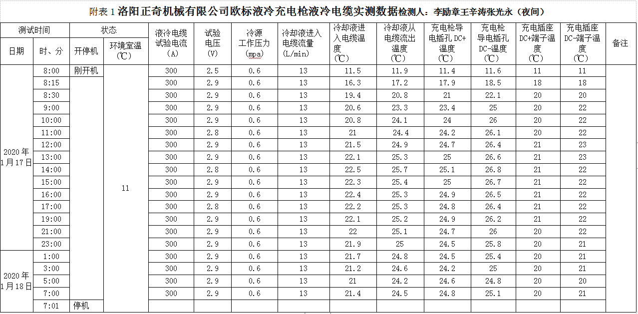 2.2液冷歐標充電槍、歐標充電槍用液冷線纜性能指標
